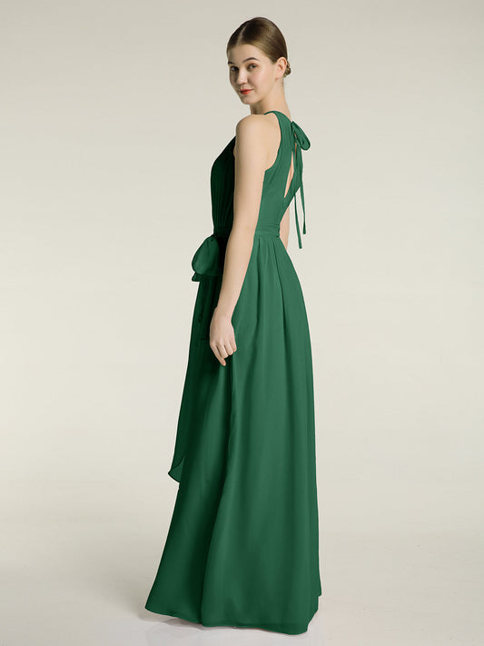 Babaroni JaneVestidos largos de chiffon estilo halter con lazo Verde Oscuro