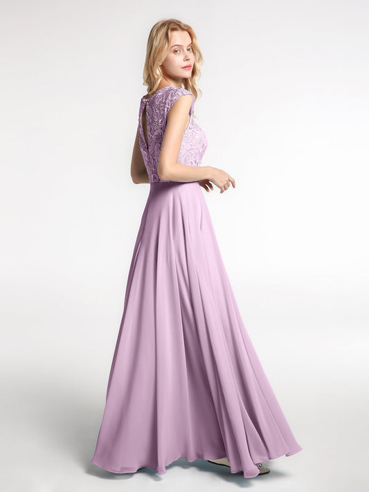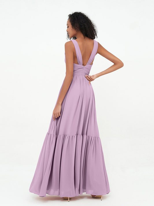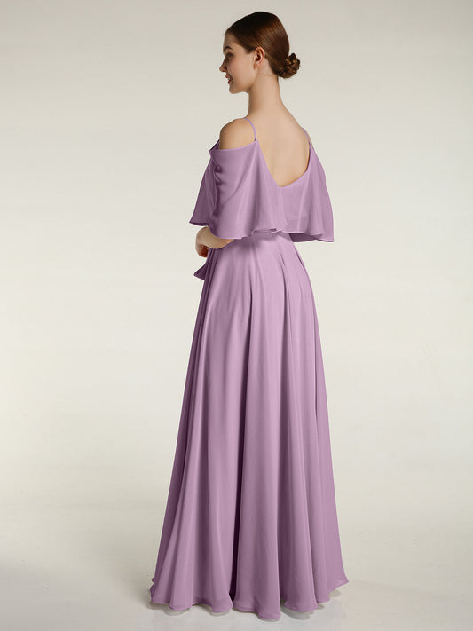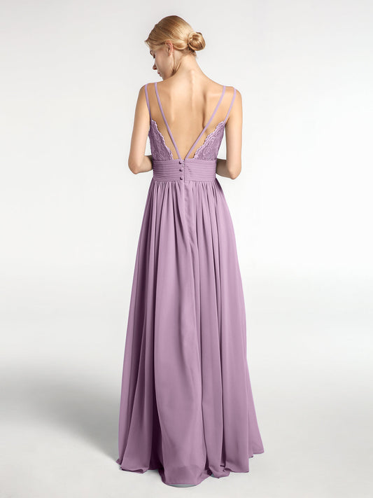 Vestido largo de dama de honor de chiffon con tirantes dobles Wisteria