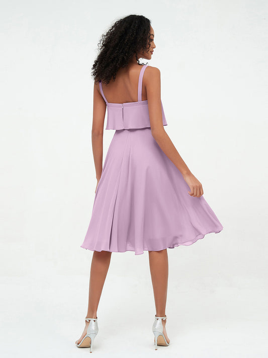 Vestidos cortos de chiffon con tirantes para la dama de honor con falda redonda Wisteria
