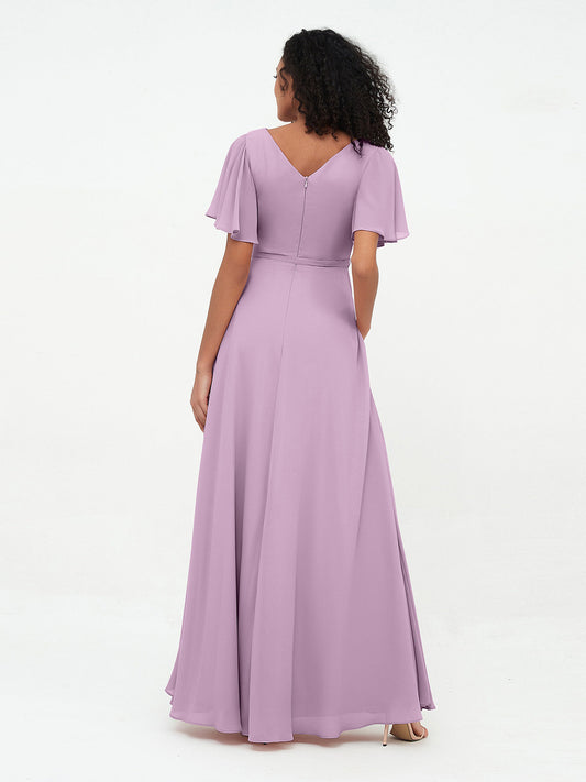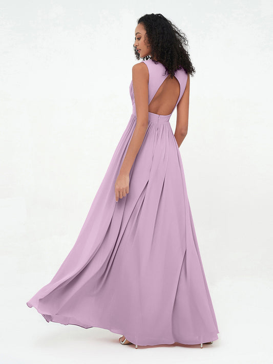 Vestidos largos de chiffon con escote en V y espalda abierta Wisteria