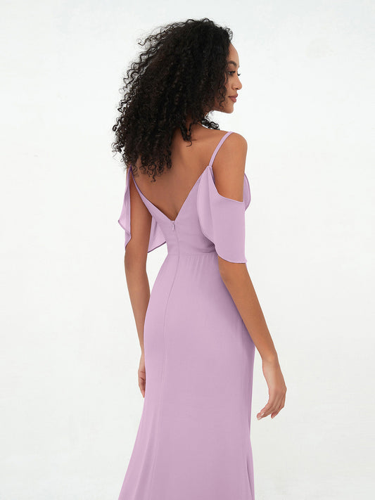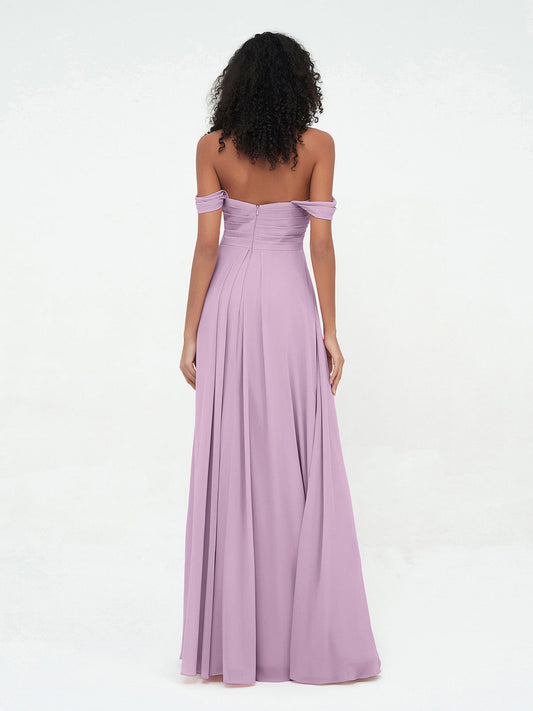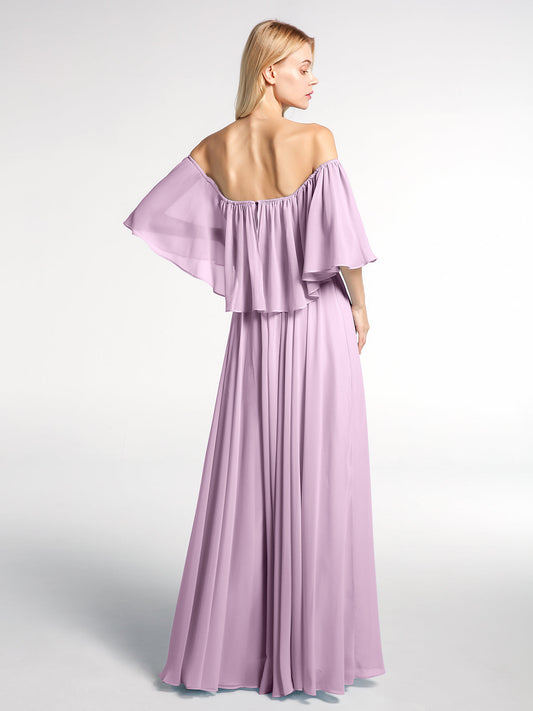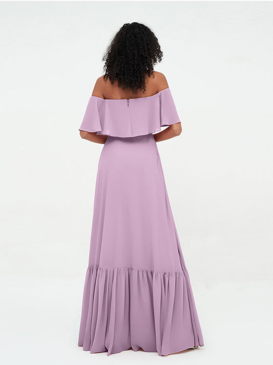 Vestidos máximos de chiffon con falda escalonada estilo off shoulder Wisteria