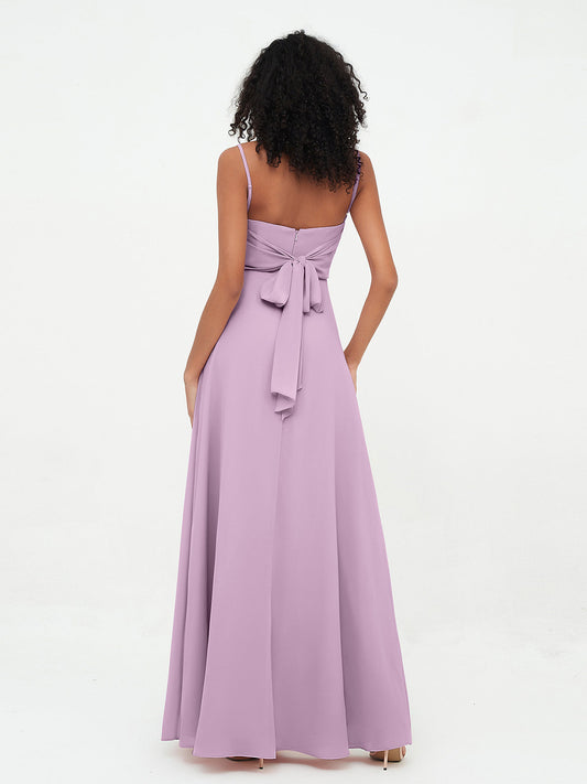 Vestidos de chiffon con tirantes spaghetti y escote en forma de corazón Wisteria