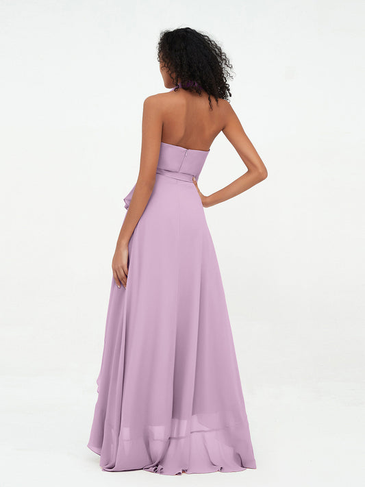 Vestidos asimétricos de chiffon con cuello halter y escote en V profundo Wisteria