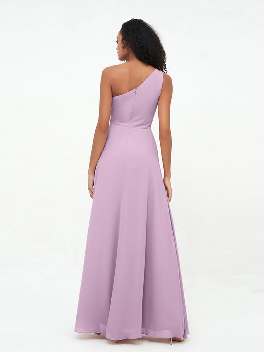 Vestidos máximos de chiffon de un solo hombro con abertura Wisteria