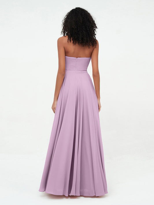 Vestidos largos de chiffon sin tirantes y escote corazón Wisteria