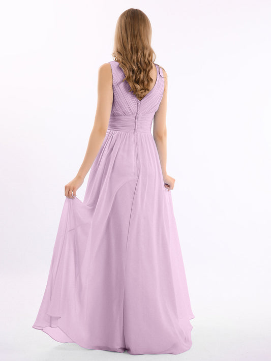 Babaroni GailVestidos largos de chiffon con escote en V hasta el suelo Wisteria