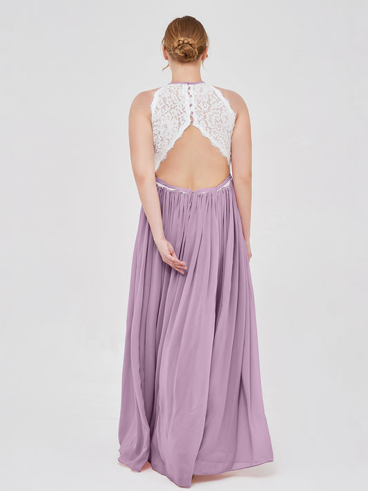 Babaroni GwendolynGwendolyn Encaje Y Gasa Largo Corte De Dama De Honor Wisteria