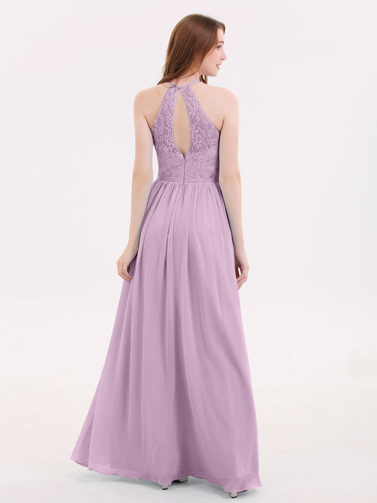 AgotadoBabaroni AdalynAdalyn Escote En V Gasa Y Encaje Maxi Corte De Dama De Honor Wisteria
