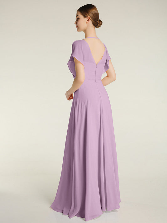 Babaroni SibylVestido largo de chiffon sencillo con escote en forma de muesca Wisteria