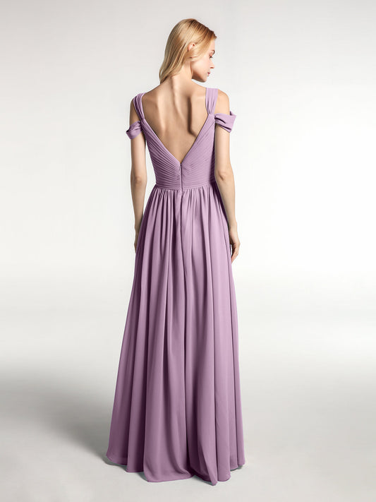 Babaroni CoraVestido largo de dama de honor de chiffon con tirantes dobles Wisteria