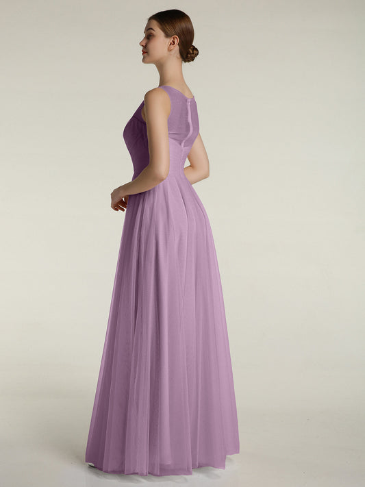 Babaroni LoreleiVestidos largos de tul con escote en V ilusión Wisteria
