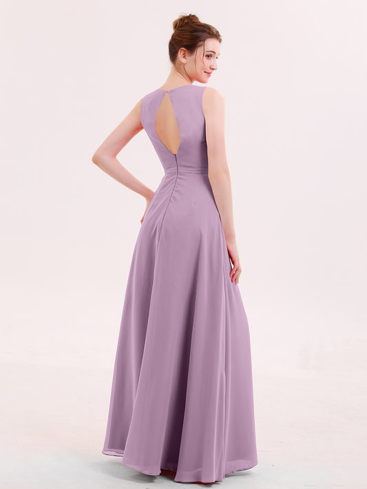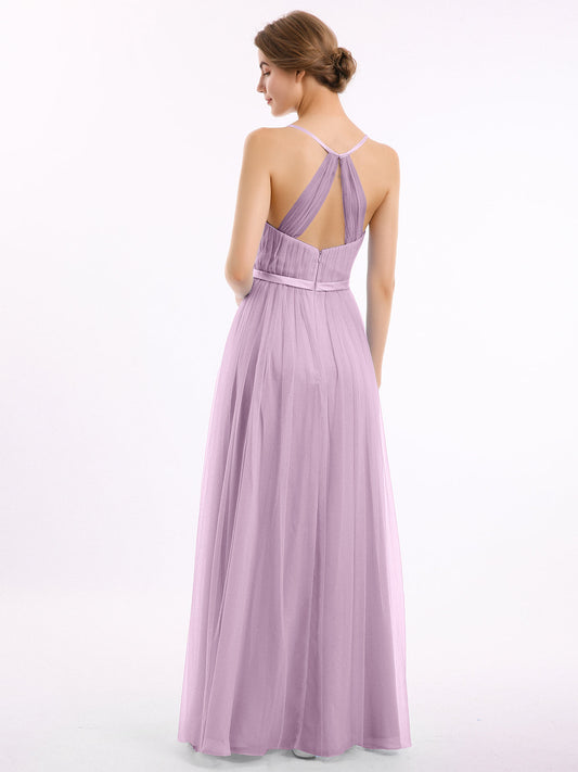 Babaroni AmyVestidos largos de dama de honor de chiffon con tirantes de cuello halter Wisteria