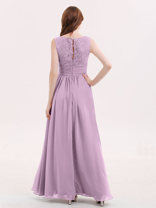 AgotadoBabaroni AdalynAdalyn Escote En V Gasa Y Encaje Maxi Corte De Dama De Honor Wisteria