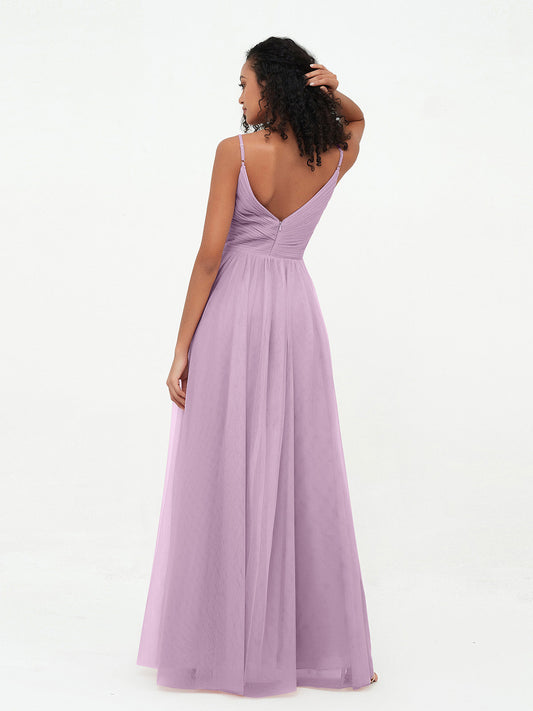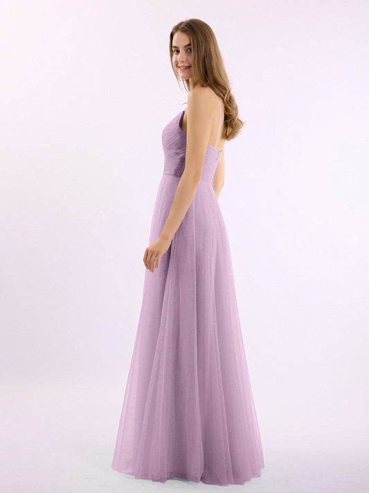 Babaroni MarjorieVestidos largos de tul plisado con tirantes spaghetti Wisteria