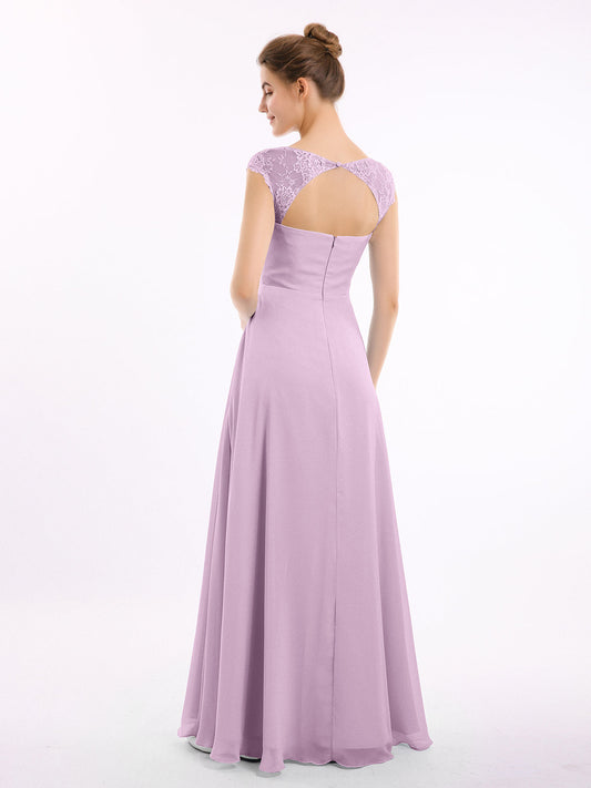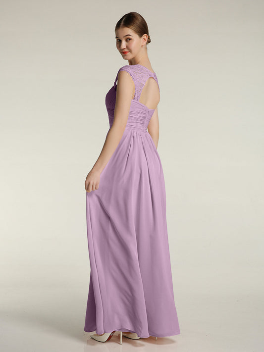 Babaroni MarleyVestidos de dama de honor de chiffon con mangas cap de encaje Wisteria