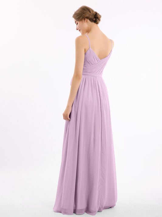 Babaroni CoraVestido largo de dama de honor de chiffon con tirantes dobles Wisteria
