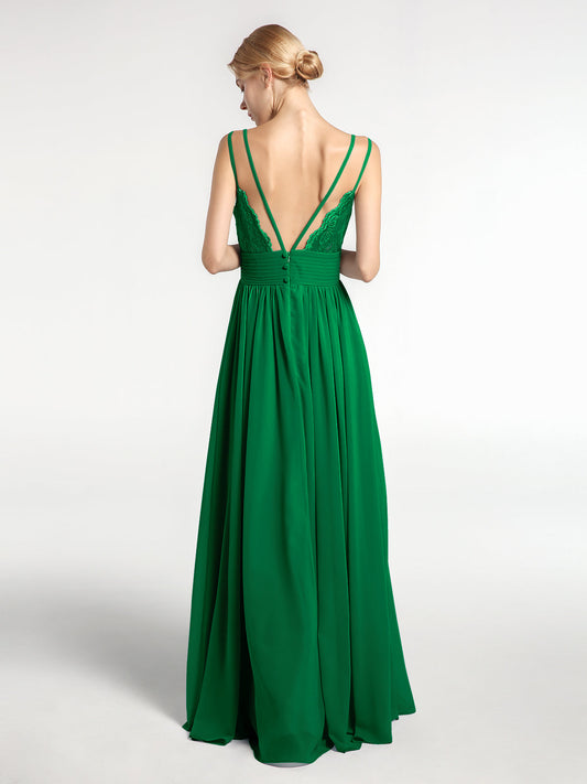 Babaroni DanaVestidos largos de chiffon con escote en V y espalda abierta Esmeralda