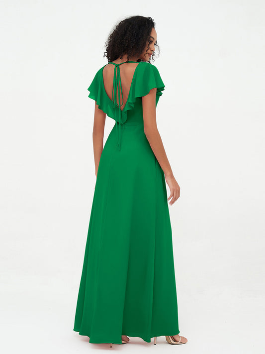 Babaroni PagVestidos estilo A-line de chiffon con escote en V y abertura Esmeralda