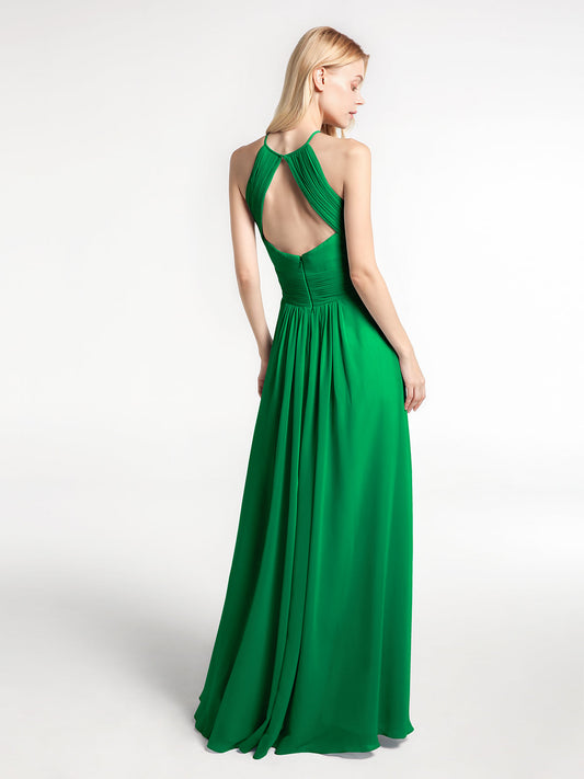 Babaroni VictoriaVestido de chiffon con cuello halter y abertura en forma de cerradura con bolsillos Esmeralda