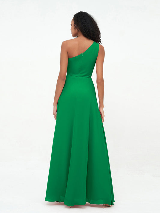 Babaroni XantheVestidos máximos de chiffon de un solo hombro con abertura Esmeralda