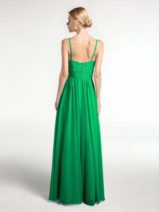 Babaroni CherryVestidos largos de encaje y chiffon con tirantes finos Esmeralda