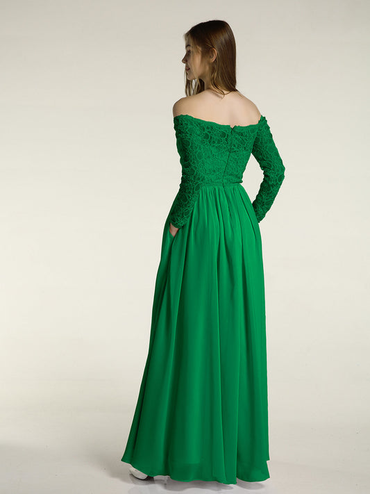 Babaroni AmoretVestido largo de chiffon y encaje con espalda descubierta Esmeralda
