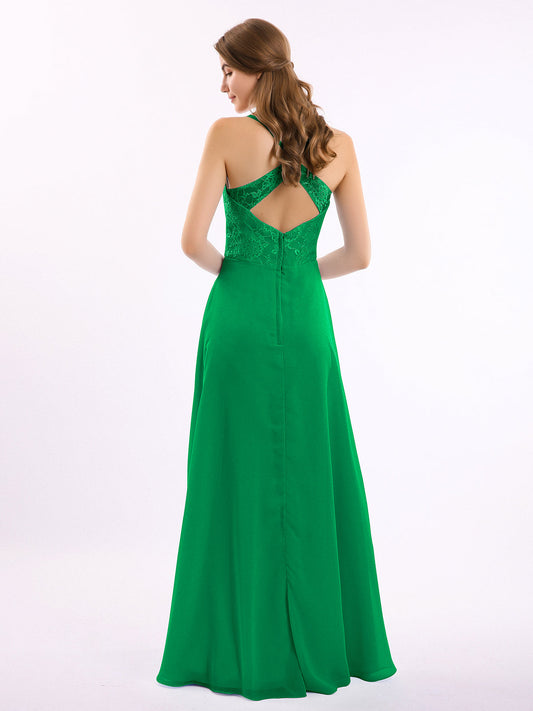 Babaroni LucilleVestidos largos de chiffon con encaje en escote en V profundo y espalda descubierta Esmeralda