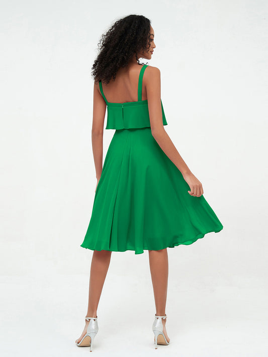 Babaroni AnnaVestidos cortos de chiffon con tirantes para la dama de honor con falda redonda Esmeralda