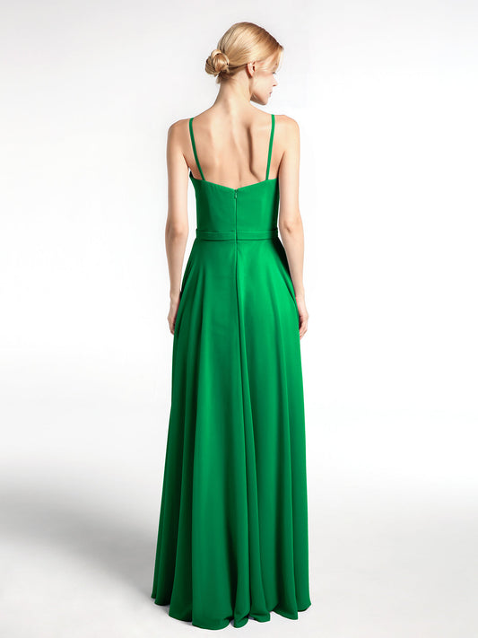 Babaroni EllaVestido sencillo de chiffon con tirantes finos y escote en forma de muesca Esmeralda