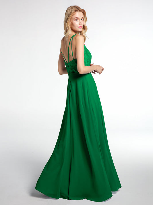 Babaroni LaraineVestido maxi con cuerpo de encaje y falda de chiffon con escote en V Esmeralda