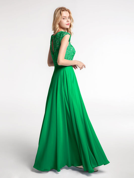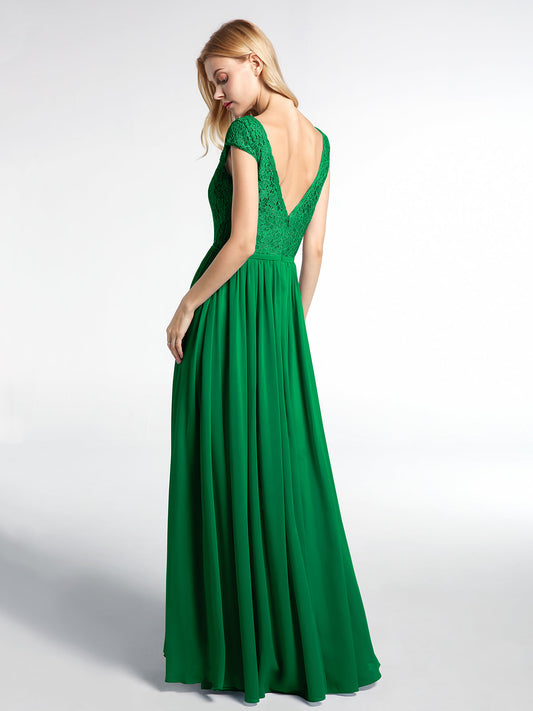 Babaroni SherryVestido maxi de encaje y chiffon con mangas cortas Esmeralda