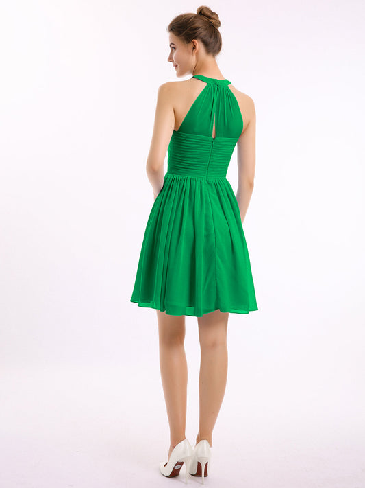 Babaroni KyreneVestidos cortos de chiffon estilo halter para damas de honor Esmeralda