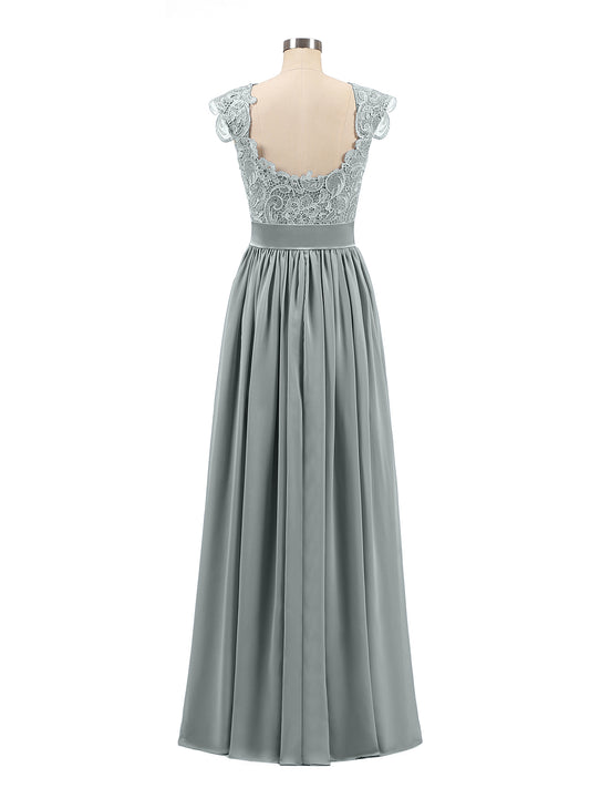 Babaroni TinaVestidos largos con cuerpo de encaje y falda de tul Gris Acero