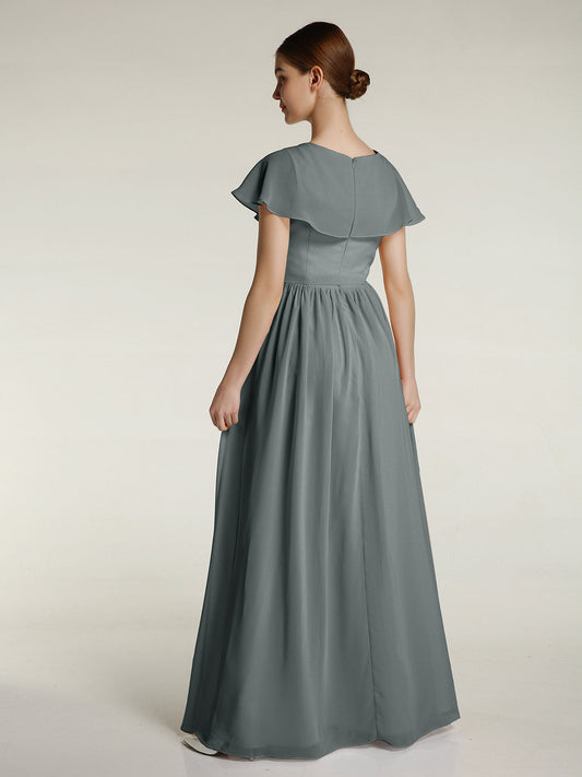 Babaroni MignonVestidos largos de dama de honor de chiffon con mangas de volantes Gris Acero