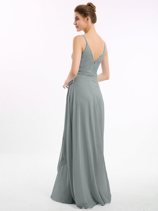 Babaroni MaudSencillos vestidos largos de chiffon con tirantes finos y abertura Gris Acero
