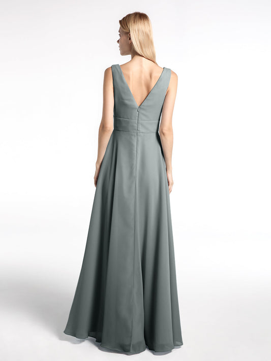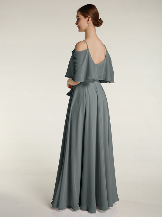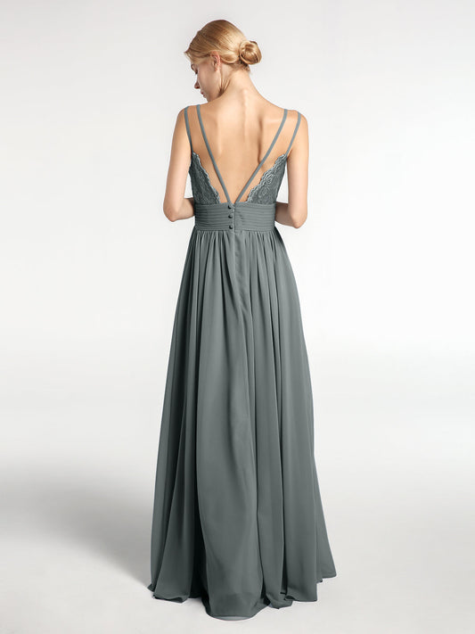 Babaroni CoraVestido largo de dama de honor de chiffon con tirantes dobles Gris Acero