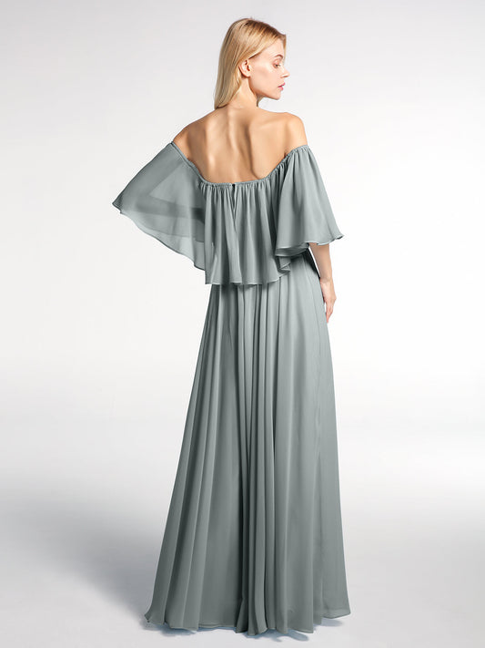 Babaroni VirginiaVestidos máximos de chiffon con falda escalonada estilo off shoulder Gris Acero