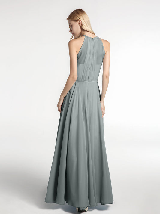 Babaroni AmyVestidos largos de dama de honor de chiffon con tirantes de cuello halter Gris Acero