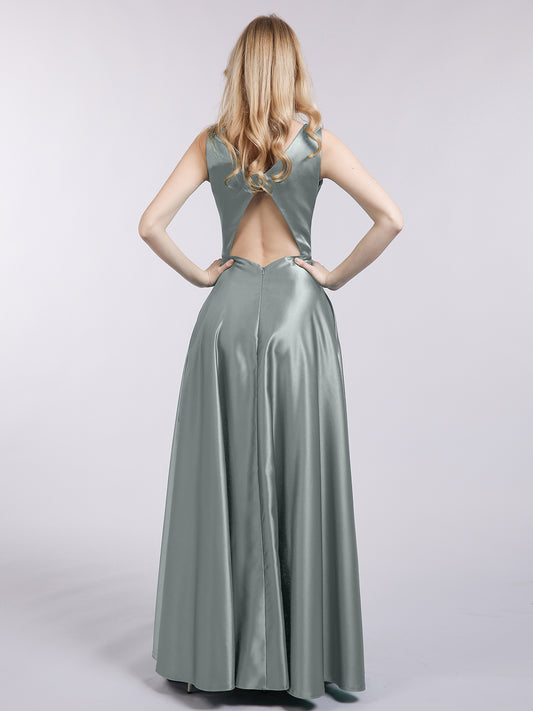 Babaroni MeroyMeroy Espalda Abierta Largo Saten Corte Con Escote En V Gris Acero
