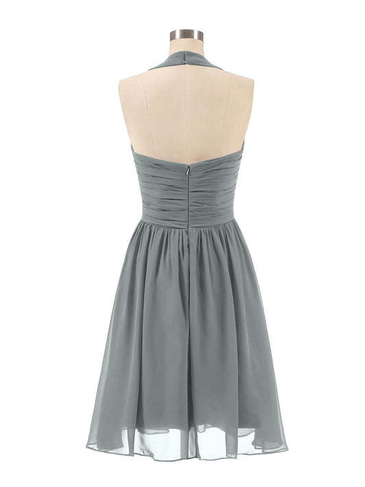 Babaroni SylviaVestidos cortos de dama de honor de chiffon estilo halter Gris Acero