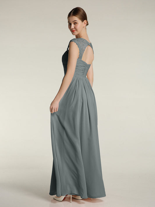 Babaroni MarleyVestidos de dama de honor de chiffon con mangas cap de encaje Gris Acero