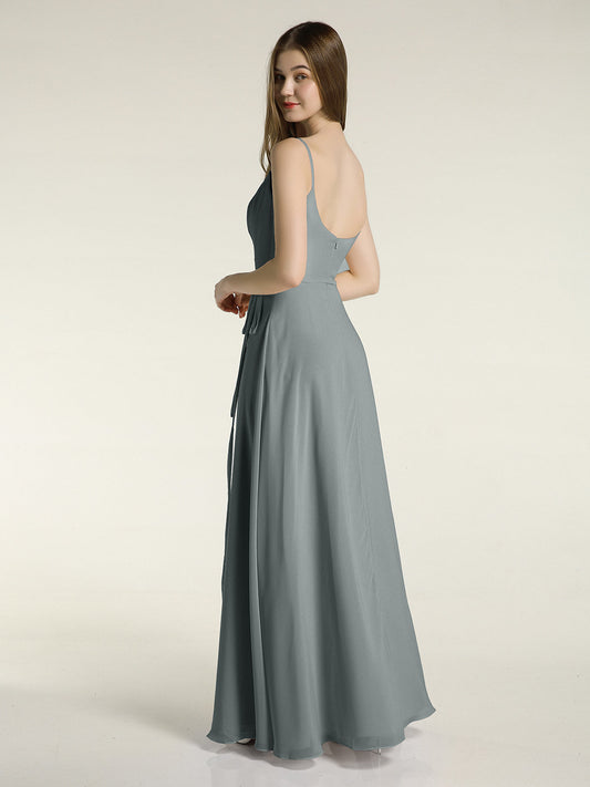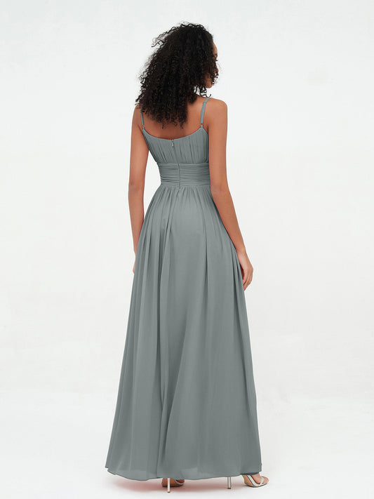 Babaroni MaudSencillos vestidos largos de chiffon con tirantes finos y abertura Gris Acero