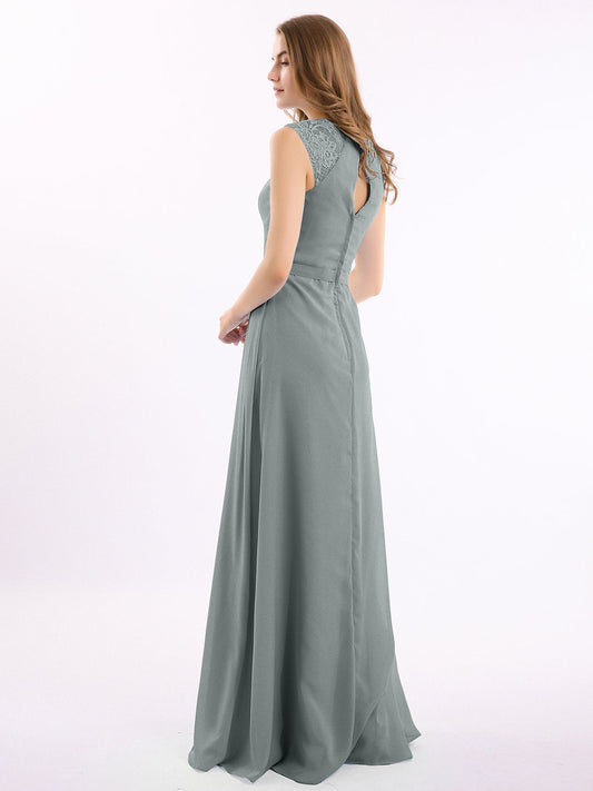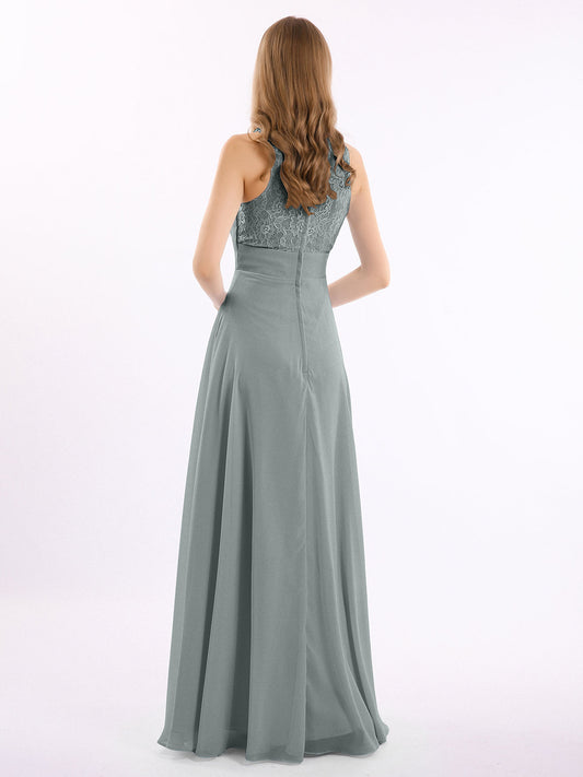 Babaroni LucilleVestidos largos de chiffon con encaje en escote en V profundo y espalda descubierta Gris Acero