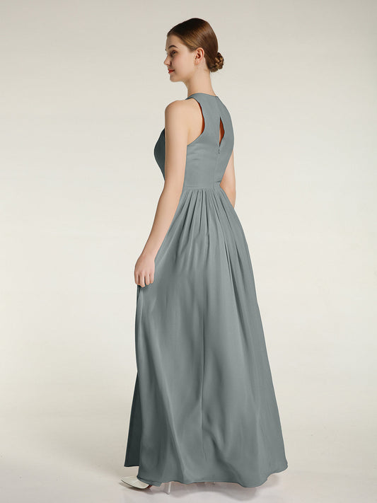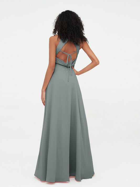 Babaroni AprilVestido sencillo de chiffon estilo halter con abertura Gris Acero