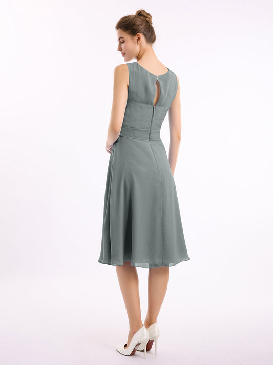 Babaroni IsobelVestido corto de chiffon con cuello tipo scoop y lazo de cinturón Gris Acero