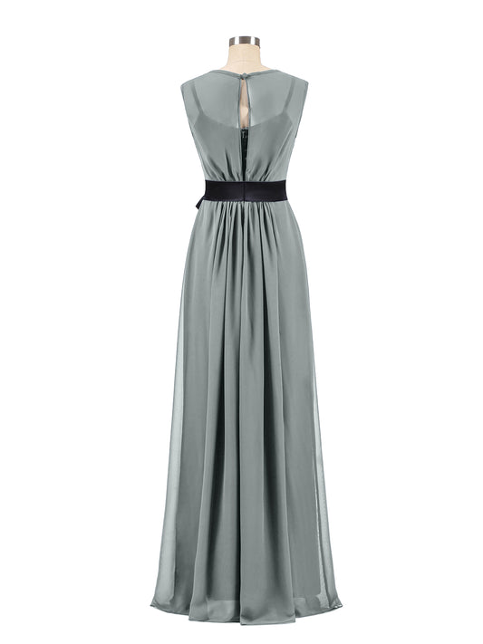 Babaroni LaurenVestidos largos de chiffon estilo princesa con abertura Gris Acero
