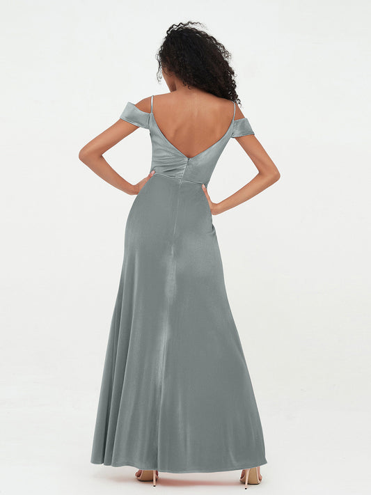 Babaroni BridgetVestidos largos de terciopelo con hombros descubiertos y mangas largas Gris Acero