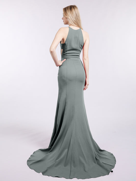 Babaroni EsmeVestidos largos de terciopelo estilo sirena con cuello barco Gris Acero