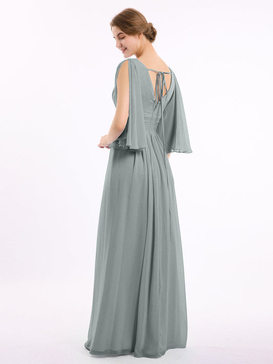 Babaroni NellyVestidos de chiffon con escote en V profundo y abertura Gris Acero