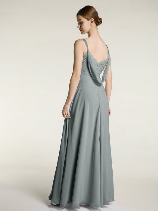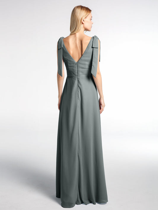Babaroni VitaVestido de dama de honor de chiffon con escote en V y espalda descubierta Gris Acero